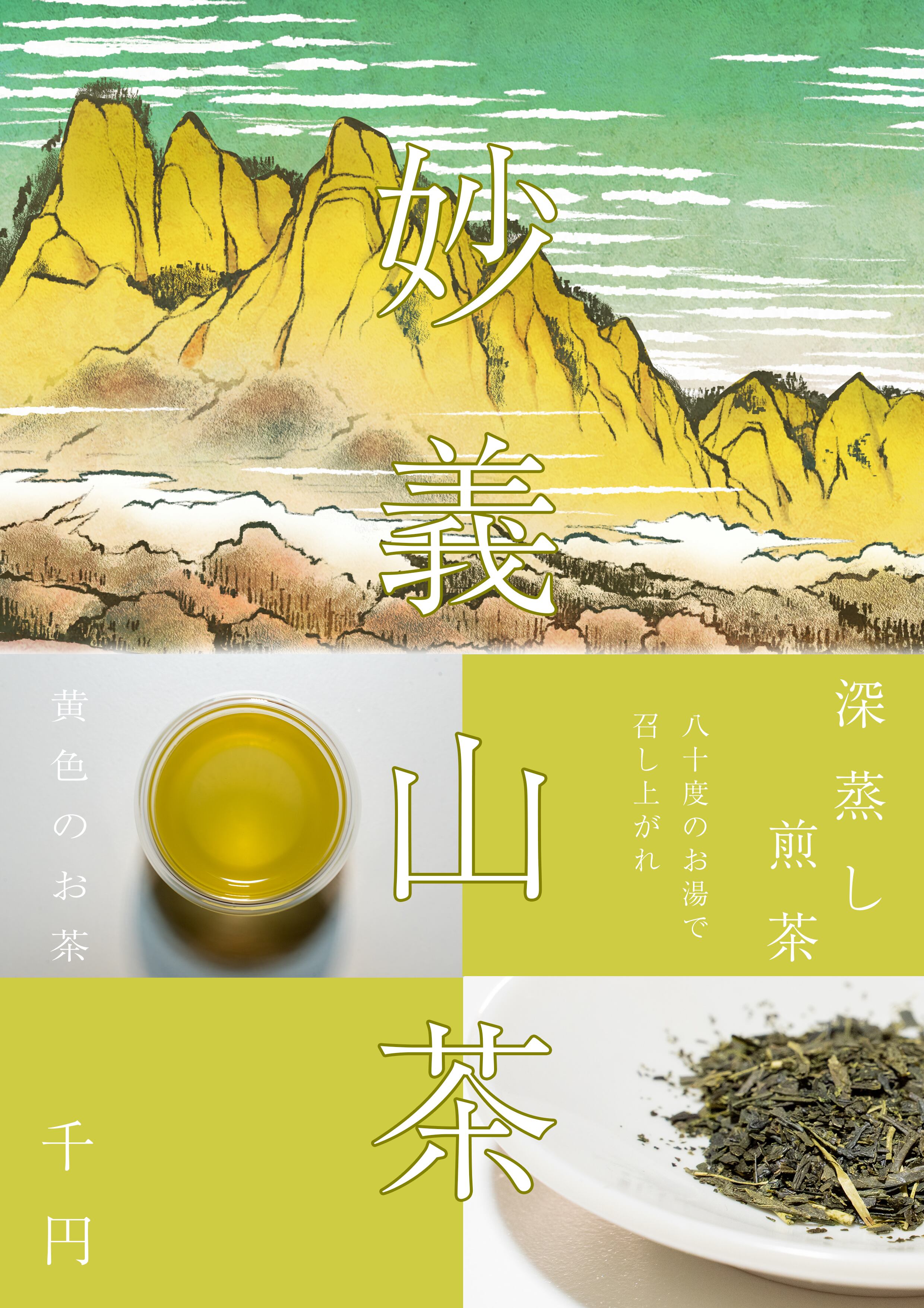 妙義山茶は、紅葉を連そさせる黄色の深蒸し煎茶です。